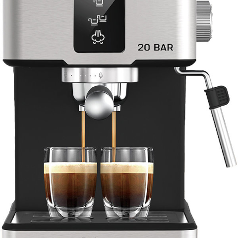 Karos kávéfőző - otthonra, 1400 W teljesítmény, 20 bar nyomás, anyaga rozsdamentes acél, 1,7 l-es víztartály, automatikus kikapcsolás, forró víz funkció, két csésze készítése egyszerre, italkészítés egy gombnyomásra, víztartály, gőzfúvóka, energiatakarékos mód és automatikus öblítés, tárolóhely a poharaknak és csészemelegítés, érintőkijelző, mérete 27,8 × 21 × 25 cm (Ma×Sz×Mé), tömege 2,75 kg A Rohnson R-98024 karos kávéfőző legfontosabb jell