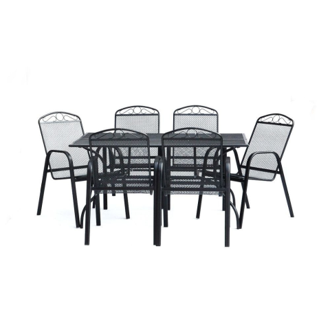 Rojaplast POTENZA FÉM KERTI BÚTOR SZETT, 6DB SZÉKKEL, FEKETE kerti bútor termékleírás