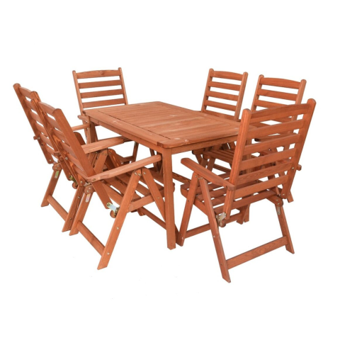 1 kép Rojaplast REGGIO FENYŐFÁBÓL KÉSZÜLT KERTI BÚTOR SZETT, 6 DB SZÉKKEL
