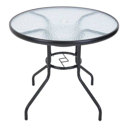 Rojaplast Rojaplast ZWMT fém kerti üveg körasztal napernyőlyukkal, Ø 80 cm kerti bútor termékleírás