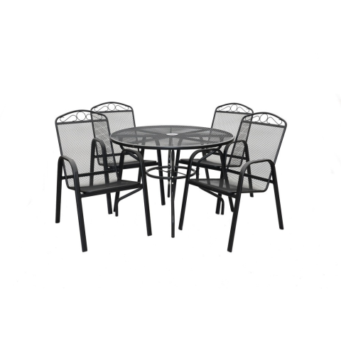 Rojaplast TERAMO FÉM KERTI BÚTOR SZETT, 4 DB SZÉKKEL, FEKETE kerti bútor termékleírás