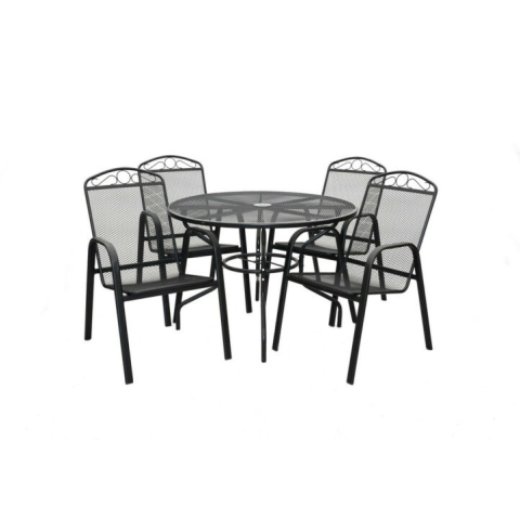 Teljes Rojaplast Teramo fém kerti bútor szett, 4db székkel, fekete termékleírás