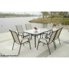 Teljes Rojaplast xt1012Tt set fém kerti üvegasztal napernyőlyukkal, 6 db székkel termékleírás
