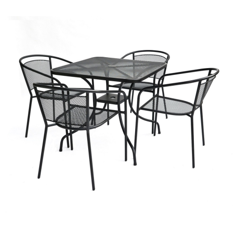 Teljes Rojaplast ZWMT-80 SET fém kerti asztal napernyőlyukkal, 4 db székkel - fekete termékleírás