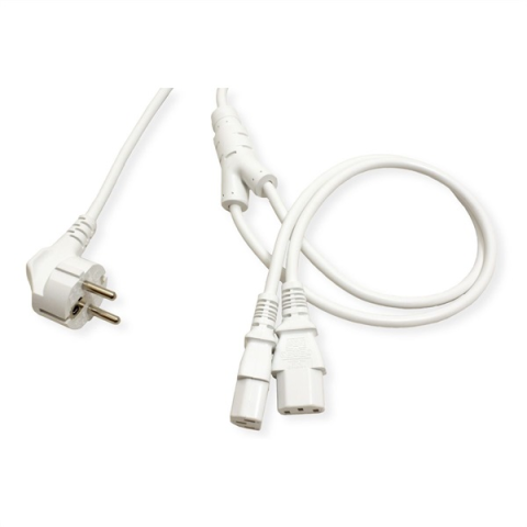 ROLINE Y-Tápkábel Schuko - 2x C13, 2m, fehér