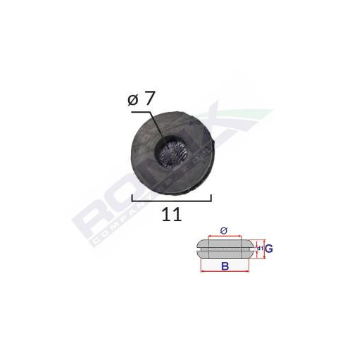 ROMIX | Kábel átvezető gyűrű | gumidugó 11/7mm Méretek: ø 7 mm B: 11 mm G: 5 mm