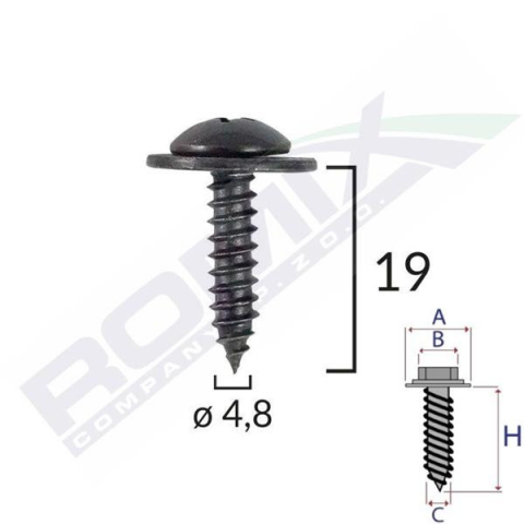 ROMIX | Lemezcsavar 4,8x19 Fekete Romix Méretek: A: 16 mm B: 11,5 mm C: 4,8 mm D: H: 19 mm