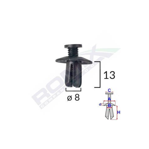 ROMIX | Patent Honda, Daewoo, Opel Méretek: A: 19,7 mm B: 8,2 mm C: 9,4 mm D: 2,6 mm H: 13 mm Lyuk átmérő: ø 8 mm