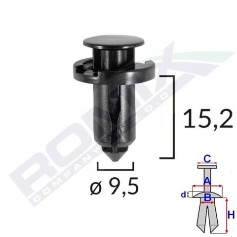 ROMIX | Patent Japán, Nissan Méretek: A: 17,9 mm B: 9,6 mm C: 13,5 mm D: 3,2 mm H: 15,2 mm Lyuk átmérő: ø 9,5 mm