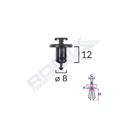 ROMIX | Patent Renault, Dacia Méretek: A: 17,7 mm B: 8 mm C: 10,1 mm D: 2,6 mm H: 12 mm Lyuk átmérő: ø 8 mm