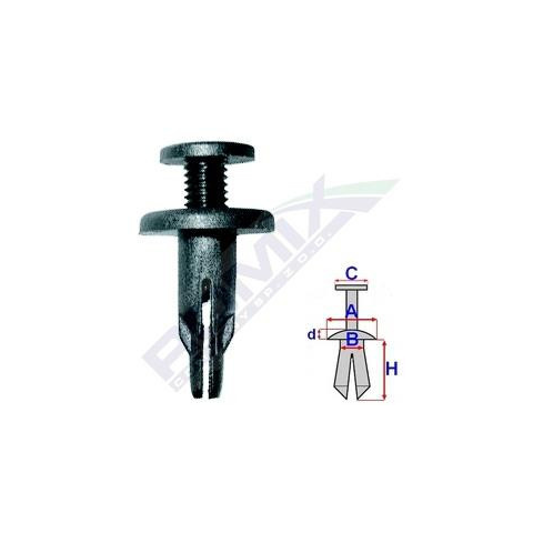 ROMIX | Patent VW, Opel, Ford, Honda, Toyota, BMW, Skoda, Mercedes Méretek: A: 17,8 mm B: 7,7 mm C: 12,8 mm D: 2,8 mm H: 21,6 mm Lyuk átmérő: ø 8 mm
