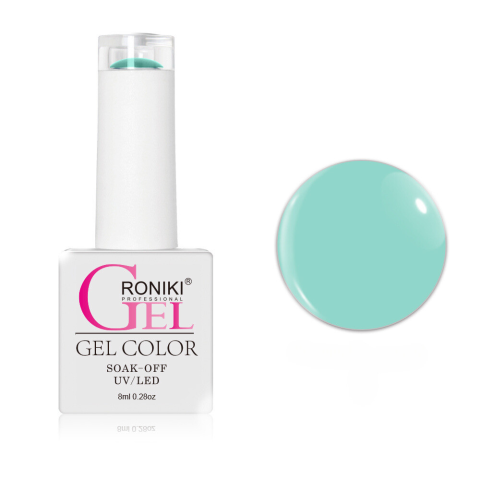 Roniki Ice green gél lakk használata 3 lépésben: Az előkészített körmök alapozása Roniki Base géllel egy rétegben. Gél lakk használata 1-2 rétegben a lakk pigmentáltságától függően. Teltebb színek esetében elegendő egy réteg gél lakk. Lezárásként egy rét