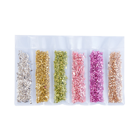 Miért válassz beépíthető körömdíszt? Hasonlóan a törtkagylóhoz az üvegtörmelék is nagyszerű választás, mivel egyedi és lenyűgöző megjelenést kölcsönöz. Az üvegszerű anyagok irrizáló felszínnel rendelkeznek, amely a fényben csillogva különleges hatást kel