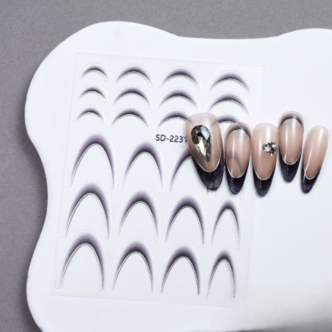 1 kép Roniki ombre francia metál mosolyvonal matrica - fekete, öntapadó - 24db