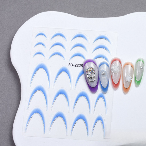 1 kép Roniki ombre francia metál mosolyvonal matrica - kék, öntapadó - 24db