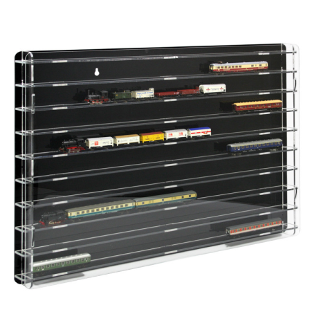 1 kép ROSA Modellvasút vitrin, polc bemutató szekrény átlátszó akril N méretarányú modellekhez fekete hátlappal