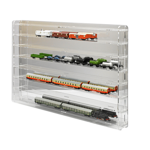 1 kép ROSA Modellvasút vitrin, polc bemutató szekrény átlátszó akril TT méretarányú modellekhez tükrös hátlappal