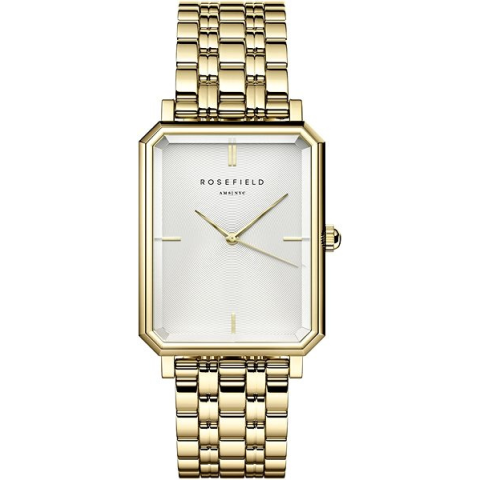 Karóra nőknek - analóg idő megjelenítés, óramű típusa quartz, szögletes számlap, elegáns, számozás nélküli, ásványi számlap, 30 m (3 ATM) vízhatlanság, a tok anyaga sárgaréz, a tok színe arany, a szíj anyaga orvosi acél, a szíj színe arany A nagyszerű ROSEFIELD Elles OCWSG-040 nőknek karóra jó szolgálatot tesz a mindennapokban. Az alapját egy 23 mm szélességű szögletes számlap alkotja. A hatékony Quartz technológia hosszú élettartamot é