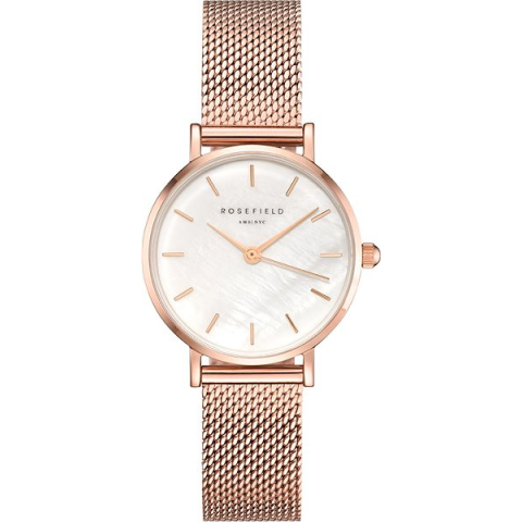 Karóra nőknek - analóg idő megjelenítés, óramű típusa quartz, kerek számlap, minimalista, számozás nélküli, ásványi számlap, 30 m (3 ATM) vízhatlanság, a tok anyaga acél, a tok színe rózsaarany, a szíj anyaga acél, a szíj színe arany A kiváló minőségű Rosefield The Small Edit Rose Gold Mesh Bracelet nőknek karóra nagyszerű viselet hétköznap és ünnepnap is. Az alapját egy 26 mm széles kerek számlap alkotja. Az évek óta bevált Quart