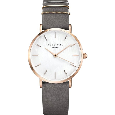 Karóra nőknek - analóg idő megjelenítés, óramű típusa quartz, kerek számlap, minimalista, számozás nélküli, ásványi számlap, 30 m (3 ATM) vízhatlanság, a tok anyaga acél, a tok színe arany, a szíj anyaga bőr, a szíj színe szürke A nagyszerű Rosefield The West Village Elephant Grey Rosegold nőknek karóra nagyszerű viselet hétköznap és ünnepnap is. Az alapját egy 33 mm szélességű kerek számlap alkotja. A hatékony Quartz technol