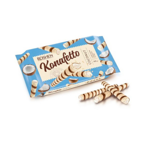 Vásárold meg most szuper áron termékünket és válogass több mint 5000 féle között! A kamraellato.hu oldalon nincs kockázat, ugyanis mindent valós magyarországi készletről szállítunk ki. Megnevezés: Roshen Konafetto kókuszkrémmel töltött ostyarúd 140 g