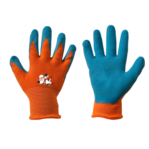 Rugalmas anyagból készült kesztyű, a tenyérrészen mártva, így jól védi a tenyeret a nedvességtől, még a kézfejen megfelelően szellőzik, hogy tartós használat esetén se izzadhasson be a gyerekek keze a kesztyűbe. Könnyű kerti munkákhoz ajánlott, gyerekek szívesen viselik, örömmel tevékenykednek a felnőttek mellett a kerti munkák során amennyiben ők is tetszetős színes kesztyűt viselhetnek.