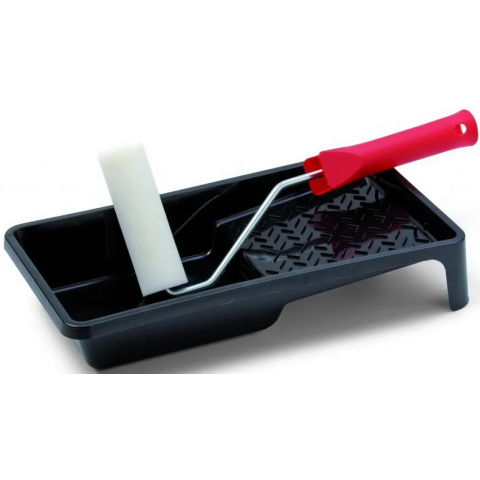 Lakkozó készlet: 10 cm egyenes végű szivacshenger 30 cm hosszú nyéllel, kis lakktállal.