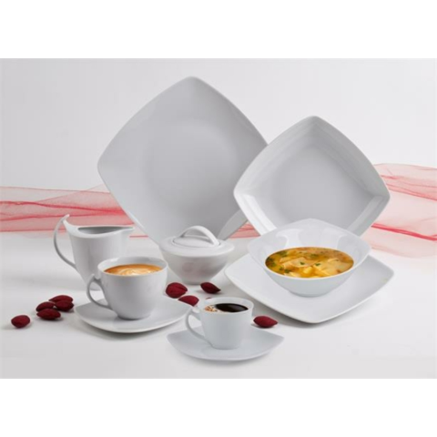 ROTBERG Lapostányér,ROTBERG, fehér, 25cm, 6db-os szett, "Quadrate" tányér és evőeszköz 1 kép
