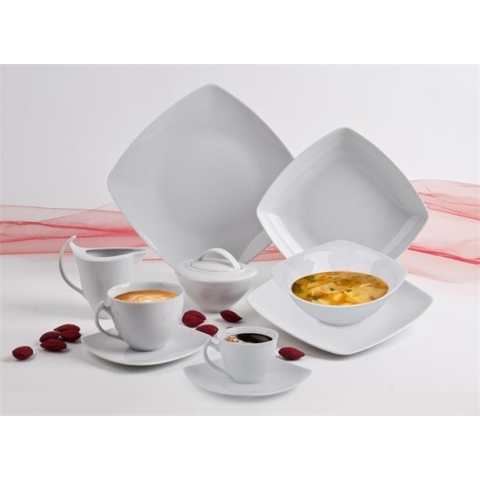 Magas minőségű fehér porcelán. Mikrohullámú sütőbe tehető. Mosogatógépbe tehető. Európában gyártott termék. Négyszögletes forma. Modern, letisztult dizájn otthoni és irodai használatra egyaránt.