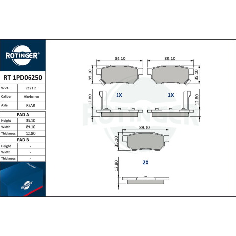 1 kép Rotinger fékbetétkészlet, tárcsafék ROTINGER RT 1PD06250