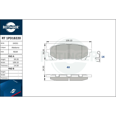 1 kép Rotinger fékbetétkészlet, tárcsafék ROTINGER RT 1PD18220