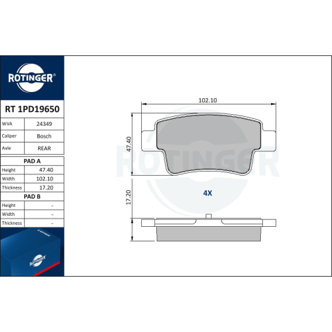 1 kép Rotinger fékbetétkészlet, tárcsafék ROTINGER RT 1PD19650