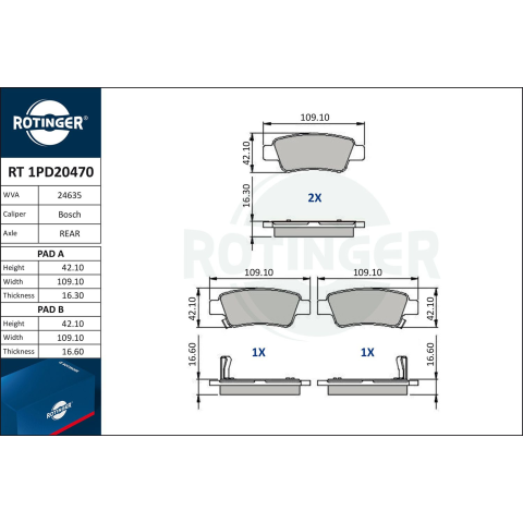 1 kép Rotinger fékbetétkészlet, tárcsafék ROTINGER RT 1PD20470