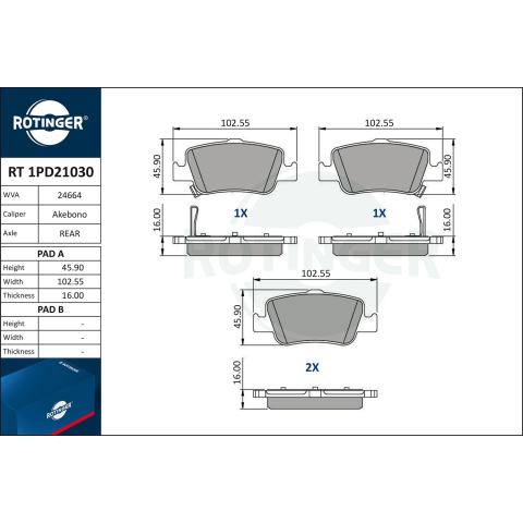 1 kép Rotinger fékbetétkészlet, tárcsafék ROTINGER RT 1PD21030