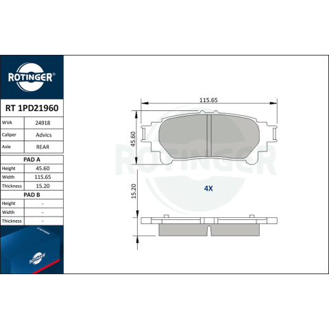 1 kép Rotinger fékbetétkészlet, tárcsafék ROTINGER RT 1PD21960