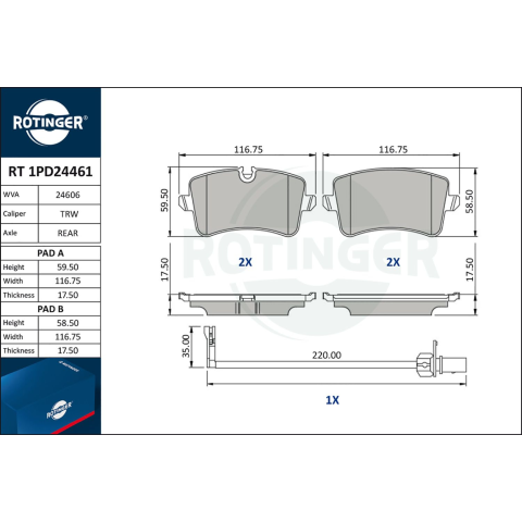 1 kép Rotinger fékbetétkészlet, tárcsafék ROTINGER RT 1PD24461