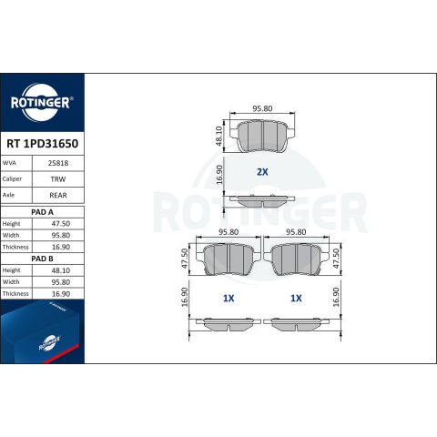1 kép Rotinger fékbetétkészlet, tárcsafék ROTINGER RT 1PD31650