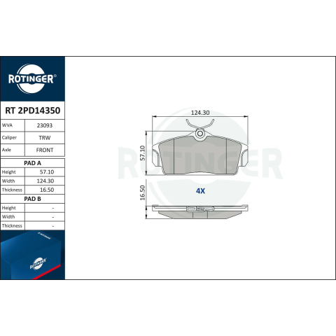 1 kép Rotinger fékbetétkészlet, tárcsafék ROTINGER RT 2PD14350