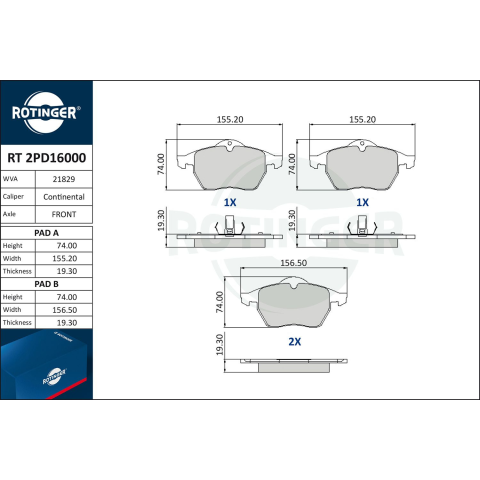1 kép Rotinger fékbetétkészlet, tárcsafék ROTINGER RT 2PD16000