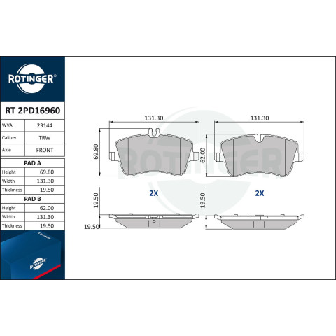 1 kép Rotinger fékbetétkészlet, tárcsafék ROTINGER RT 2PD16960