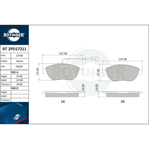 1 kép Rotinger fékbetétkészlet, tárcsafék ROTINGER RT 2PD17211