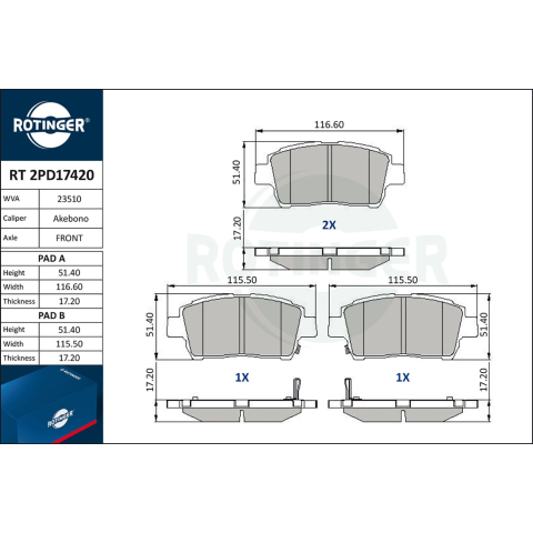 1 kép Rotinger fékbetétkészlet, tárcsafék ROTINGER RT 2PD17420
