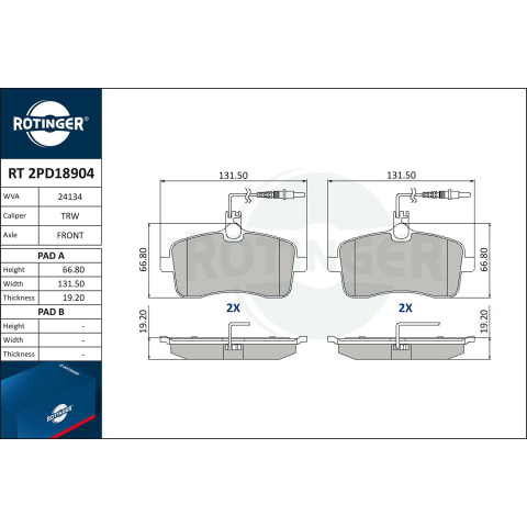 1 kép Rotinger fékbetétkészlet, tárcsafék ROTINGER RT 2PD18904