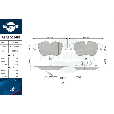 1 kép Rotinger fékbetétkészlet, tárcsafék ROTINGER RT 2PD21652