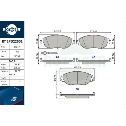 1 kép Rotinger fékbetétkészlet, tárcsafék ROTINGER RT 2PD22501