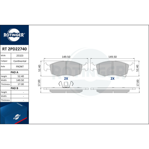 1 kép Rotinger fékbetétkészlet, tárcsafék ROTINGER RT 2PD22740