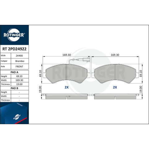 1 kép Rotinger fékbetétkészlet, tárcsafék ROTINGER RT 2PD24922