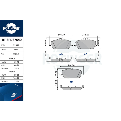 1 kép Rotinger fékbetétkészlet, tárcsafék ROTINGER RT 2PD27640