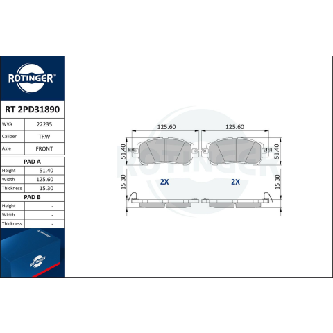 1 kép Rotinger fékbetétkészlet, tárcsafék ROTINGER RT 2PD31890