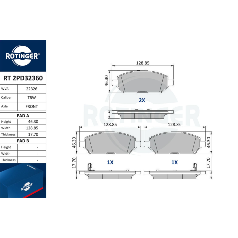1 kép Rotinger fékbetétkészlet, tárcsafék ROTINGER RT 2PD32360
